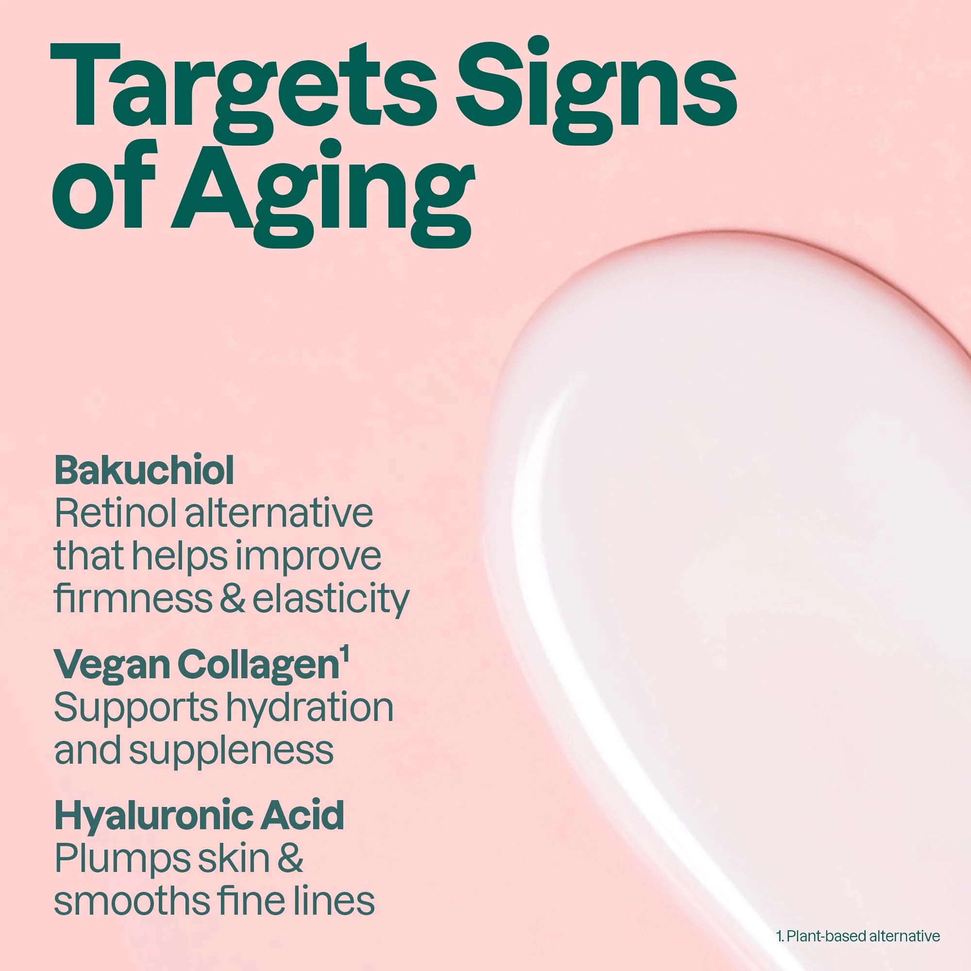 Formulated with +97% natural-origin ingredients*, it features bakuchiol, a plant-based alternative to retinol, to improve firmness and elasticity, vegan collagen¹ to enhance hydration, and hyaluronic acid to plump skin and smooth the look of fine lines and wrinkles.