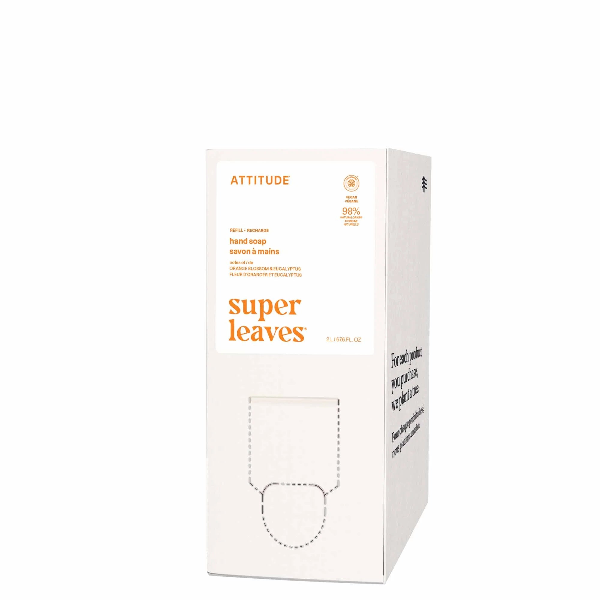 ATTITUDE⢠vegan energizing hand soap gently cleanses your hands. Formulated with 98.9% naturally sourced ingredients* including orange leaves extract to restore skinâs suppleness and improve its appearance. EWG VERIFIED⢠and dermatologically tested, this cleansing soap is enriched with watercress and Indian cress to revitalize skin and keep it healthy. Infused with a floral fragrance with orange blossom and eucalyptus notes, this soap eliminates impurities and makes hand washing a joy. Its eco-refill format is easy to carry and use at home.
