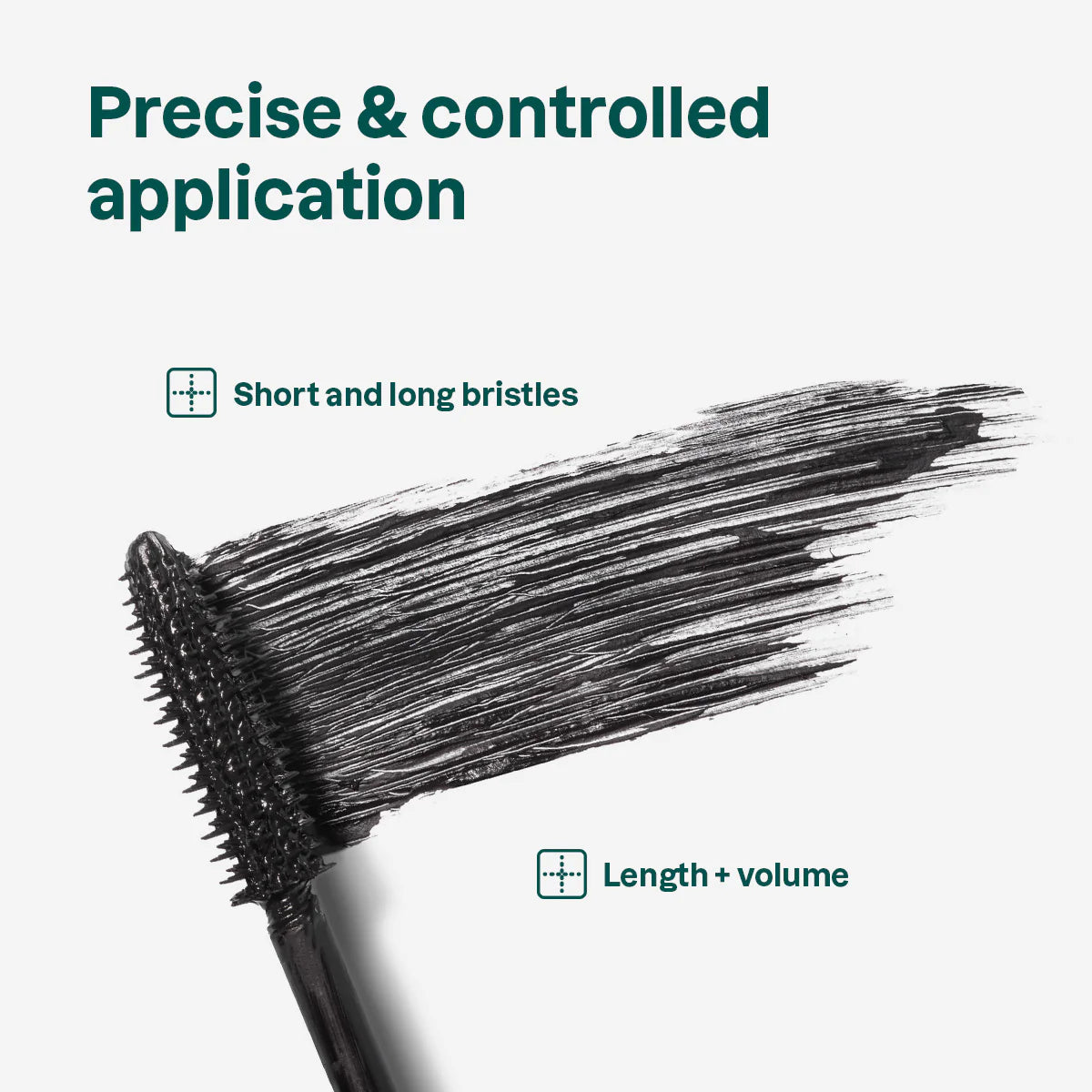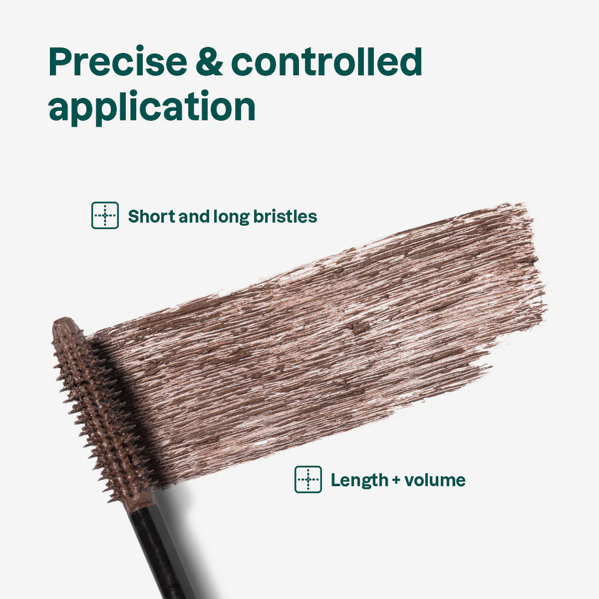 Place the brush at the base of lashes and gently sweep from root to tip to stretch each lash upward and outwards. Repeat until desired volume and length achieved.