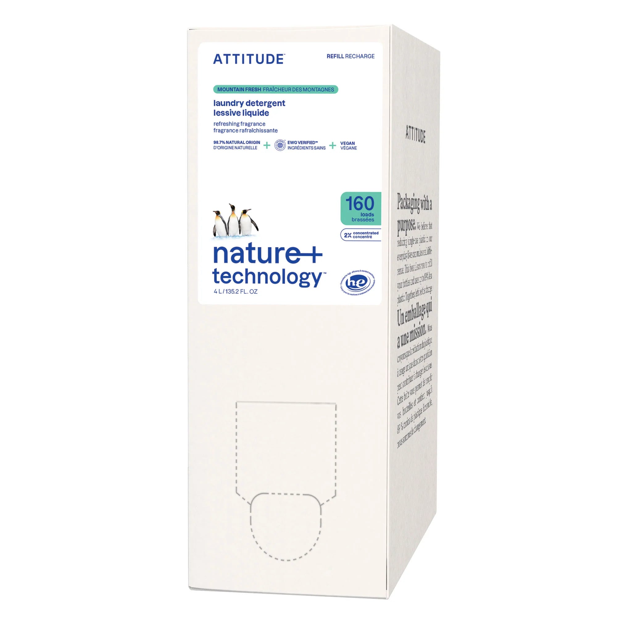 Formulated with 98% naturally derived ingredients, ATTITUDE⢠laundry detergent packs excellent detergent power and is free of enzymes. Its aldehyde notes blend perfectly with freesia to create an airy floral blend matched with a mildly sweet combination of almond and vanilla. This blend will envelop your laundry in a fresh and comforting fragrance. Its concentrated formula allows you to do more loads while using the same amount of detergent. Our laundry detergent is effective for cold water wash, saving you energy. Its vegan formula is certified by PETA and is offered in a 4 L eco-refill format thatâs easy to use at home.