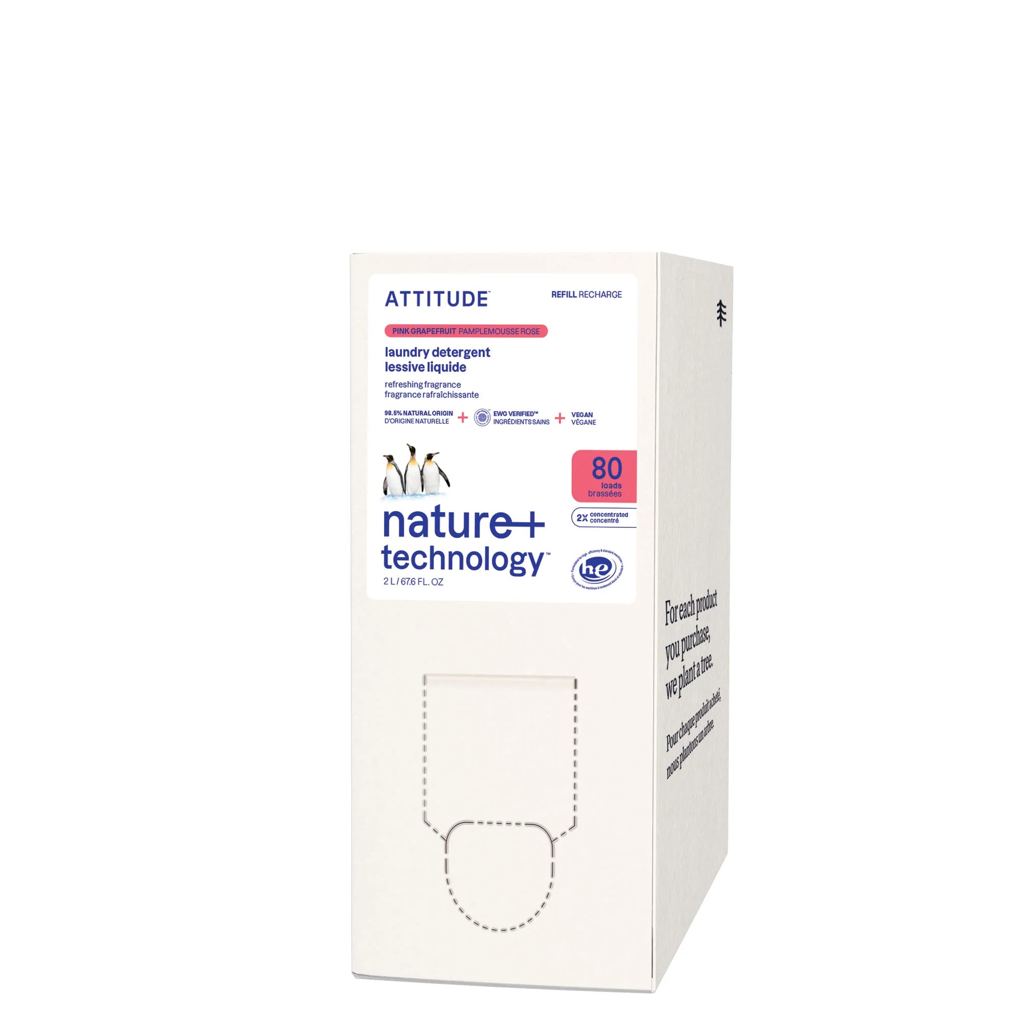 Formulated with 98% naturally derived ingredients, ATTITUDE⢠laundry detergent packs excellent detergent power and is free of enzymes. Its lively pink grapefruit notes blend harmoniously with the gentle floral tones of orange blossom. Its aromatic blend will give your laundry a sunburst of energy. Its concentrated formula allows you to do more loads while using the same amount of detergent. Our laundry detergent is effective for cold water wash, saving you energy. Its vegan formula is certified by PETA and is offered in a 2L eco-refill format thatâs easy to carry and use at home. Gentle on both your skin and the planet.
