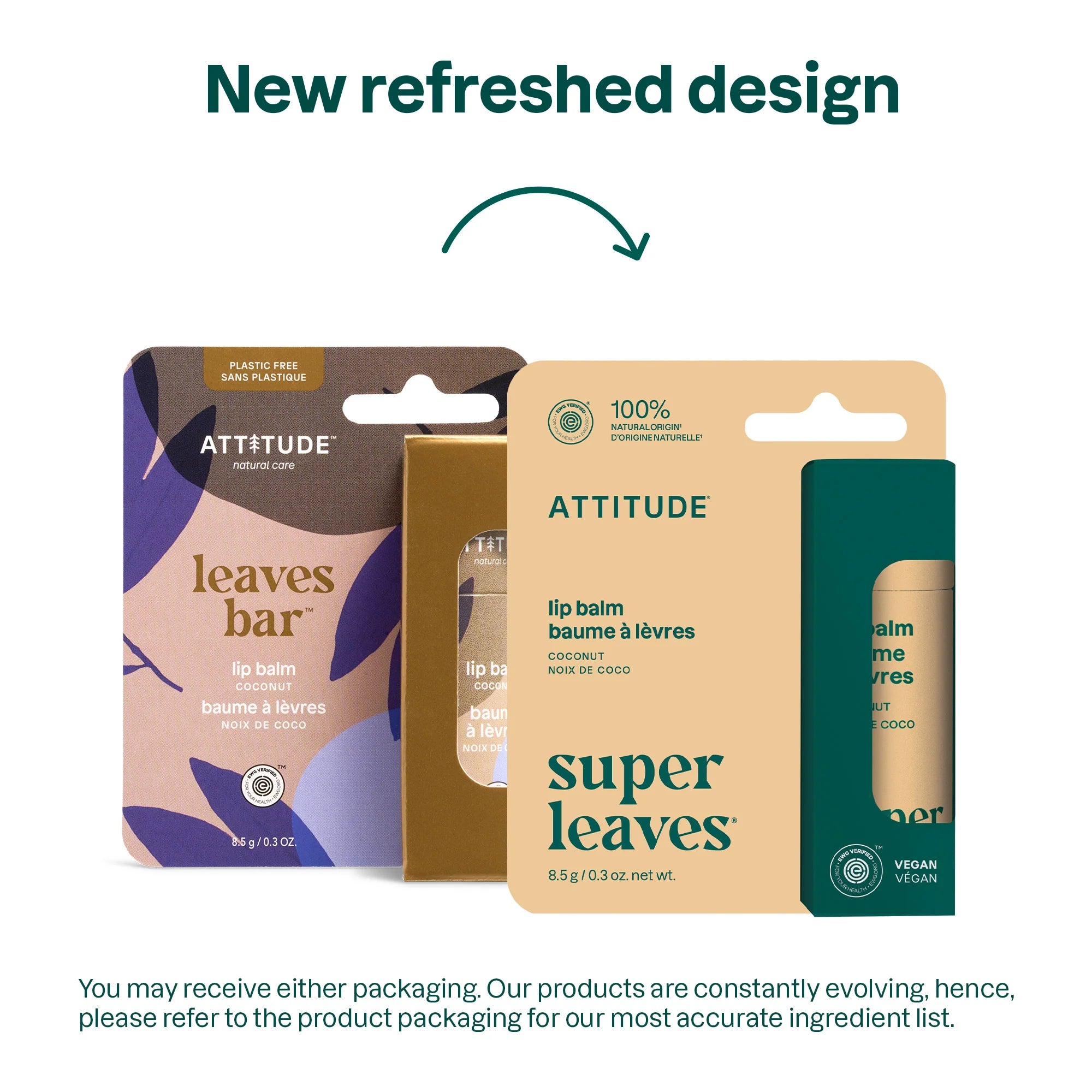 Smooth on our delicious ATTITUDE leaves bar⢠Lip Balm â Coconut and you'll see why it will capture your heart (and your lips!). A collection of deeply nourishing ingredients like shea butter, soybean, coconut and castor oils work together to protect your pout while a gentle hint of coconut will provide an instant pick-me-up. Perfect to carry on-the-go, get a serious dose of moisture or sweetness whenever you need it. EWG VERIFIED⢠and vegan, our biodegradable solid lip balm is packaged in a plastic-free, recyclable cardboard tube for an eco-friendly, clean beauty you will want to wear all day.